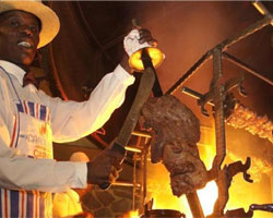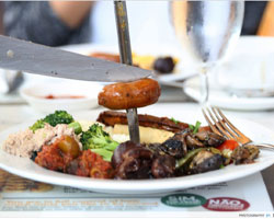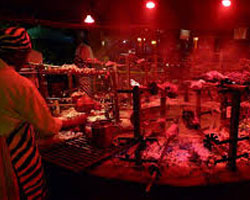 Dining at Carnivore Restaurant, located around 5 miles (8 kilometers) from Nairobi's city center, is not for the light eater, but rather an indulgent "Nyama Choma" dining venue where you sample an abundance of varied juicy meats roasted over a charcoal fire that are piled on your plate until your stomach is beyond full. When the meat has reached a perfect temperature, waiters carry the full skewers through the restaurant, and the aromas tempt your taste buds and stir your curiosity. Since 1980, Carnivore Restaurant has been satisfying the appetites of meat lovers and safari adventurers with a never-ending selection of ostrich, crocodile, venison depending on what is locally available, served alongside beef, lamb, pork and chicken.