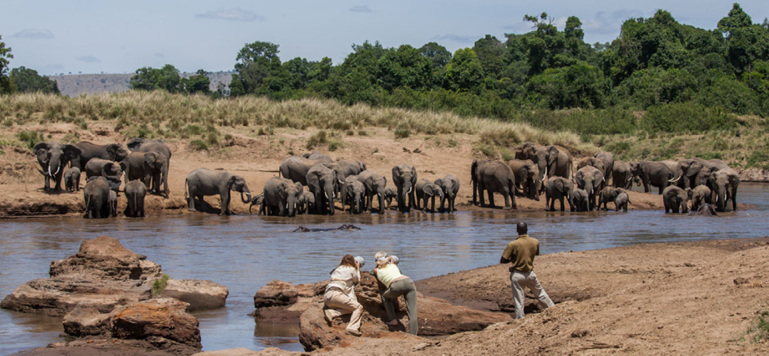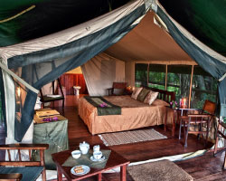 It nestles in the forest along the winding banks of the Mara River, it's waters teeming with hippos and crocodile It has 38 tents lining the riverbank, with uninterrupted views over the Mara River; others have views across the sweeping plains. Created in 1972 Governors' Camp set new standards in luxury for a tented camp. All tents have en-suit bathrooms with hot and cold running water and flushing toilets.